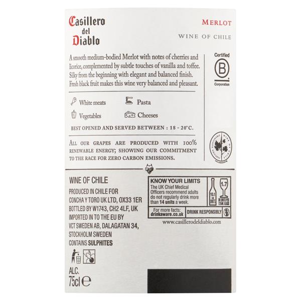 1 x Casillero del Diablo Merlot Red Wine Chile 750ml