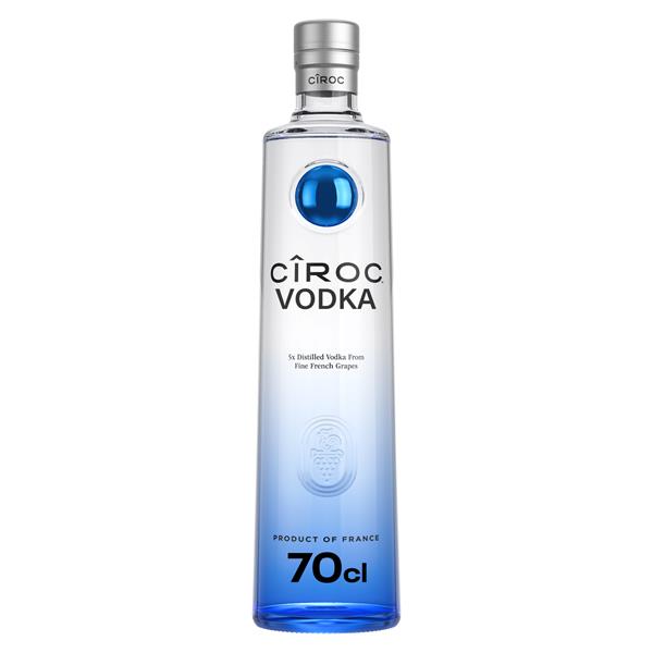 Established in 2003 in the South of France Cîroc Ultra-Premium Vodka is one of the only vodkas in the world made from fine French grapes instead of using the typical grain. Its distillation process is inspired by over a century of wine-making expertise and craftsmanship which sets Cîroc apart from other vodkas and makes it a luscious elegantly smooth and sophisticated luxury vodka. The brand's tall slender bottles are embossed with a cockerel perched on a cluster of grapes to symbolise the Gaillac region and its grape growing heritage. The fresh citrus taste and silky mouthfeel of Cîroc Ultra-Premium Vodka make of it a fantastic base for delicious drinks. Produced using fine French grapes Cîroc is distilled five times making it a luscious elegantly smooth and sophisticated luxury vodka Cîroc is perfect for celebrating in the most sophisticated way with an elegant touch of French glamour
