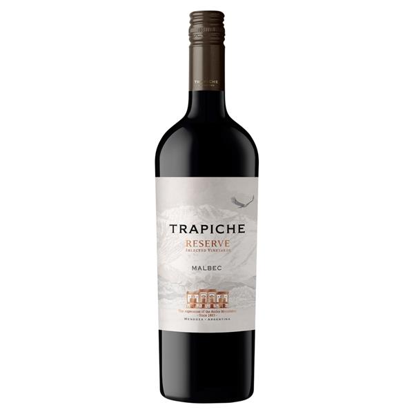 Trapiche Reserve Malbec is a classic expression of Argentina’s most famous grape, sourced from high-altitude vineyards at the foothills of the Andes. Deep and expressive, it delivers ripe blackberry and plum flavours layered with hints of vanilla, cocoa and gentle spice from oak ageing. The palate is smooth and well-structured with soft tannins and a rounded finish, making it an easy match for red meats, pasta dishes or relaxed evenings. A dependable, crowd-pleasing Malbec with real depth.